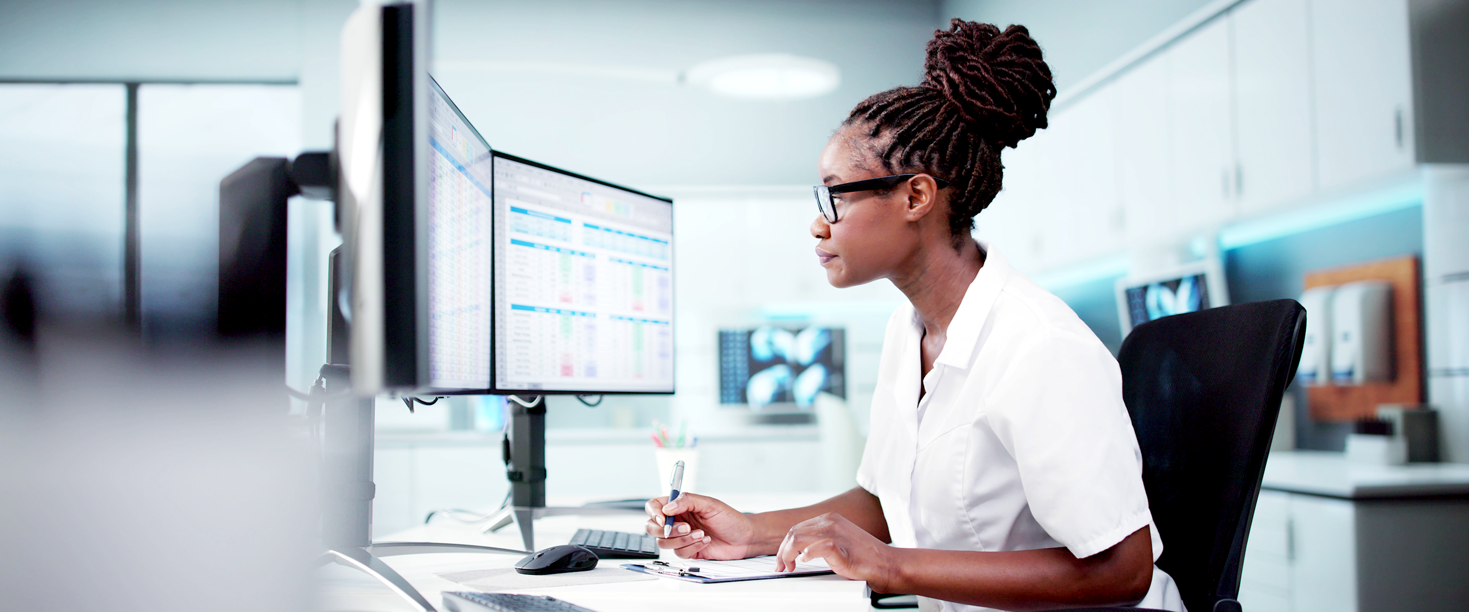• Woman at a computer
